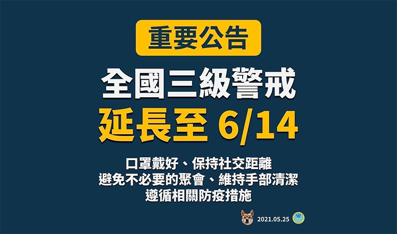 昨日中央流行疫情指揮中心公布將疫情第三級警戒延長至6/14,因此店內暫停營業將延長至 6/14。