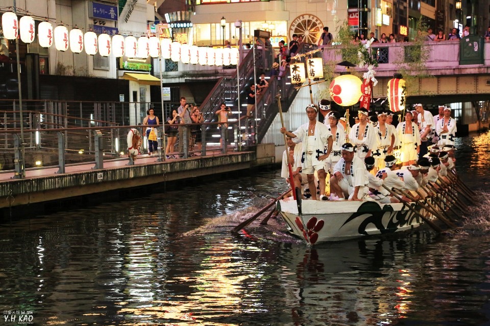 天滿宮祭祀的是學問之神菅原真公,在每年七月大阪天滿宮都會舉辦盛大的「天神祭」,天神祭為日本三大祭之一,其規模之盛大可想而知。天神祭已經有了1000年的歷史,祭典期間陸陸續續的各式活動約為期一個月,讓夏日的天滿宮充滿節慶的歡樂。其中最特別的活動便是「船渡御」,天曆5年開始了 流神事(在河川裡放流神矛,把神矛停留在河畔的位置定為當年神靈到達的地點的儀式),神鉾停留處會設置御旅所,御神靈會從陸地開始一直往河畔出御,接著穿越河川到達御旅所,而航行出御的這個過程稱為「船渡御」,也被認作是天神祭的起源。