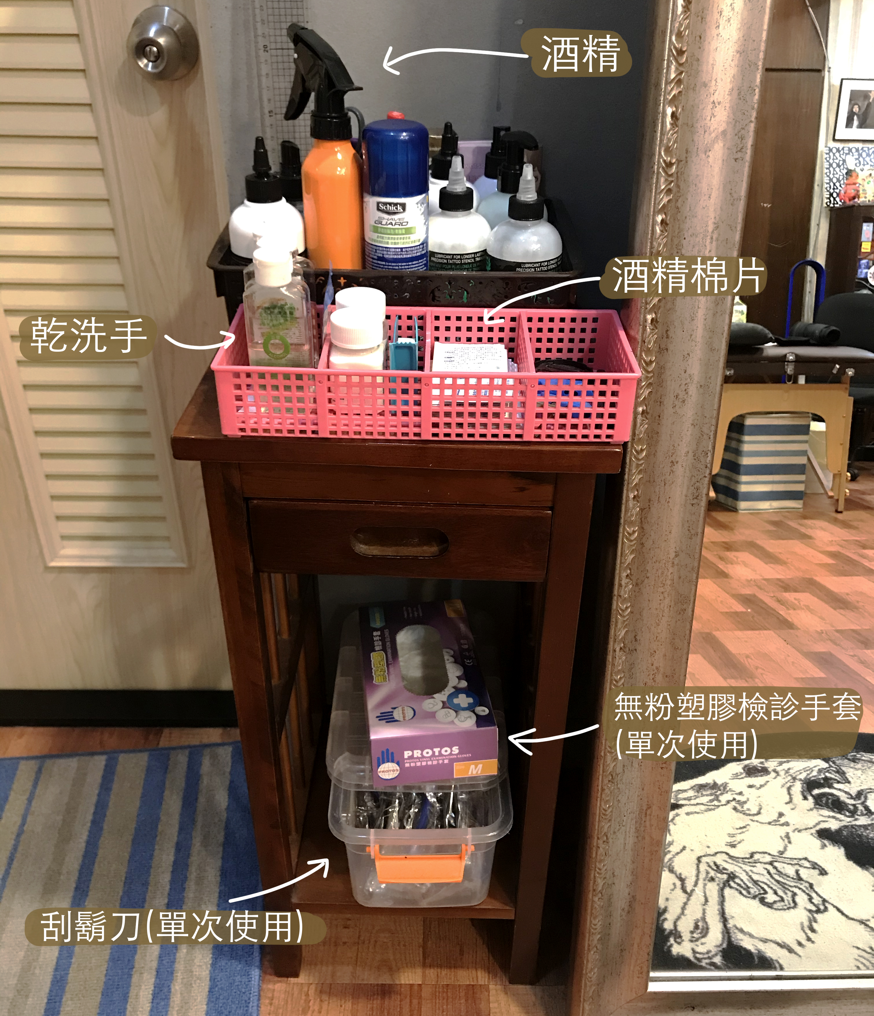 ⚫所有有機會碰觸到皮膚的週邊器材都會確實用塑膠套或保鮮膜包好,並套上塑膠套